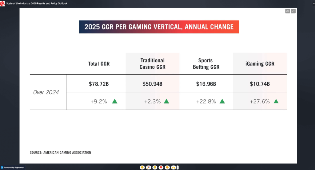 In its “State of the Industry: 2025 Results and Policy Outlook” webinar on Thursday, American Gaming Association (AGA) officials laid out results from what they deemed a smashing past year in the legal sports betting and casino sectors, before pivoting to lambaste their perceived existential threat: prediction markets.