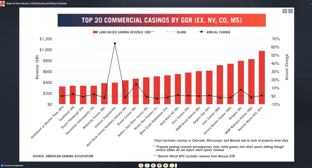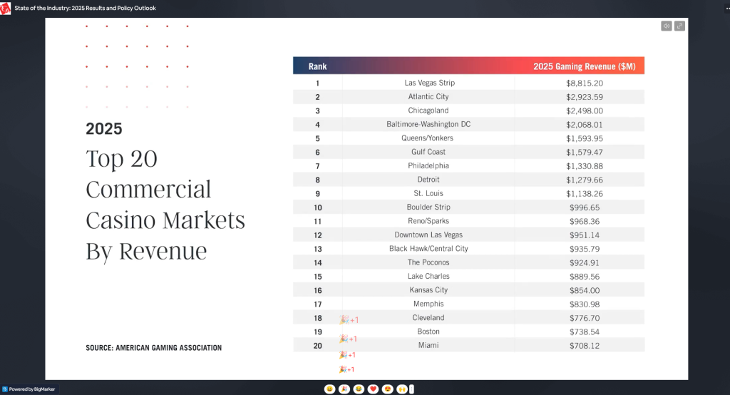 Bill Miller, president of the trade group, noted multiple revenue and legislative industry successes at state and federal levels, including a higher slots winnings tax threshold in the 2026 federal budget.