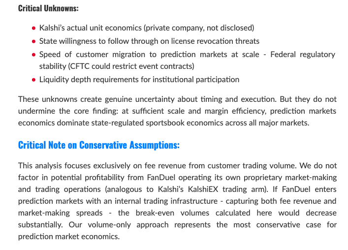 “But these concessions will come too late. Once prediction markets achieve critical mass and brand recognition, the superior economics (zero state taxes, no customer limitations, favorable federal tax treatment) make the model dominant. States that reduced taxes to retain operators would simply slow inevitable industry transition, not prevent it. The question is not whether FanDuel and DraftKings will call the bluff. The question is when.”