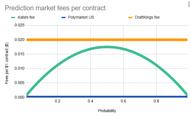 Right now, fees can be high at a flat two cents per dollar traded — one cent for DraftKings as a broker, and one for CME. For a bet at close to 50/50 odds, like most point-spread bets, the fee is far from burdensome. But for big favorites or underdogs, the impact can be much greater. A bet at 99% odds is a guaranteed loser unless the trader making that bet is getting some sort of reduced fees, as market makers on other exchanges do.