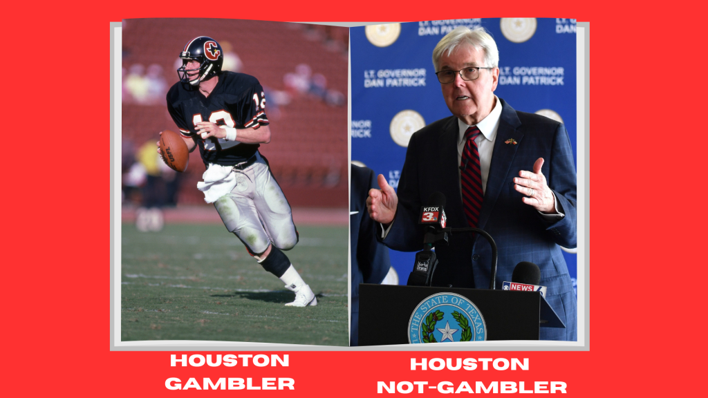 This is how scant good gambling news from Texas has become: The UFL Houston franchise just caught nostalgia and changed its name from Roughnecks to the USFL-vintage moniker Gamblers. Memories of Jim Kelly (above left), pre-Buffalo, come rushing in. If only some sports betting legalization would hit that gap.