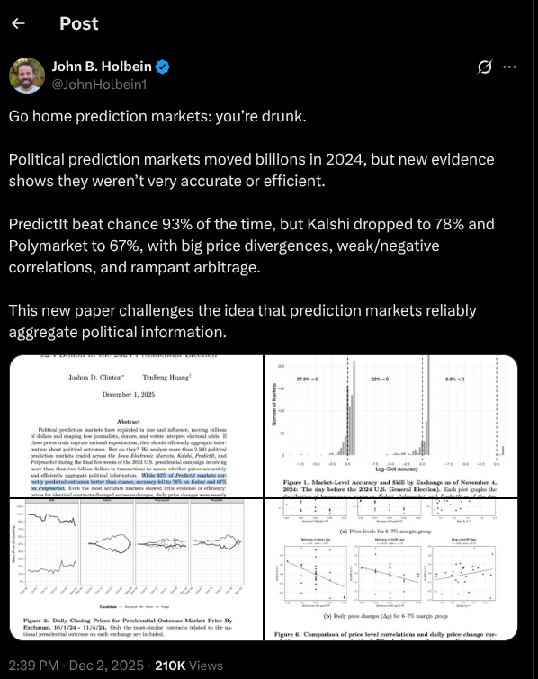 Armstrong’s little gag moved $84,000 around the markets – a pittance for a guy who’s worth $11.4 billion – but it focused serious scrutiny on how prediction markets can be manipulated.