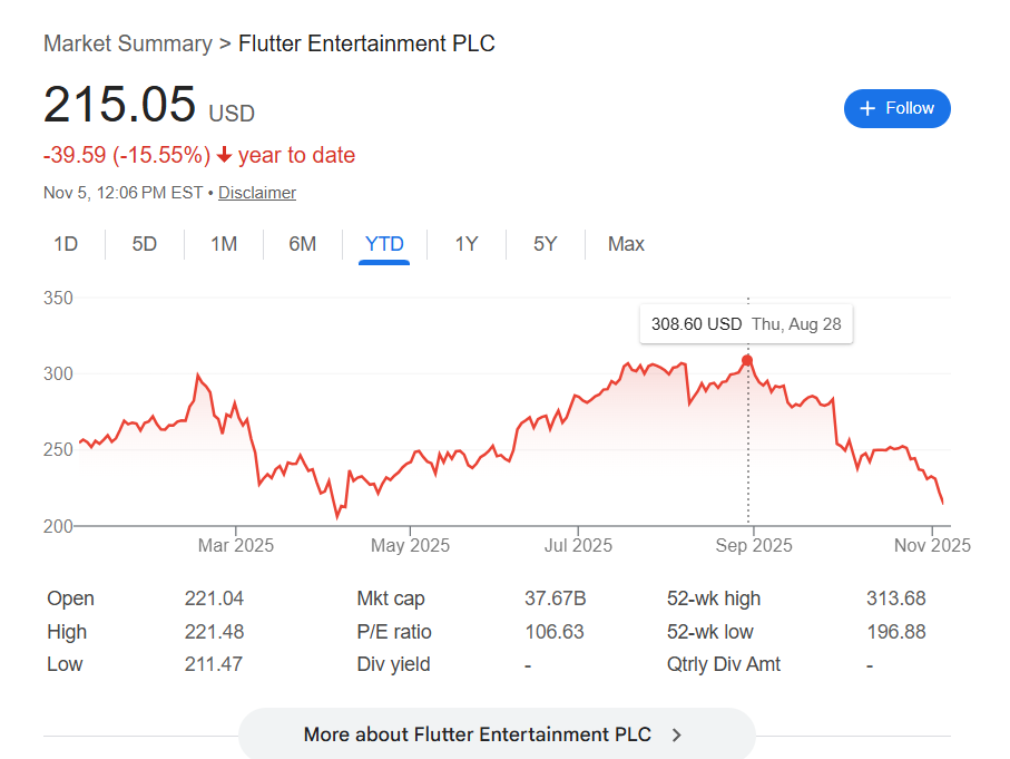 The rise of prediction markets and the operation of the sportsbook aren’t unconnected, though. Fears about prediction markets have contributed to a drop in the share price of FanDuel parent Flutter Entertainment — down 30% since late August — though bettor-friendly sports results and likely tax hikes in the UK, Flutter’s second-largest market, have played a part, too.