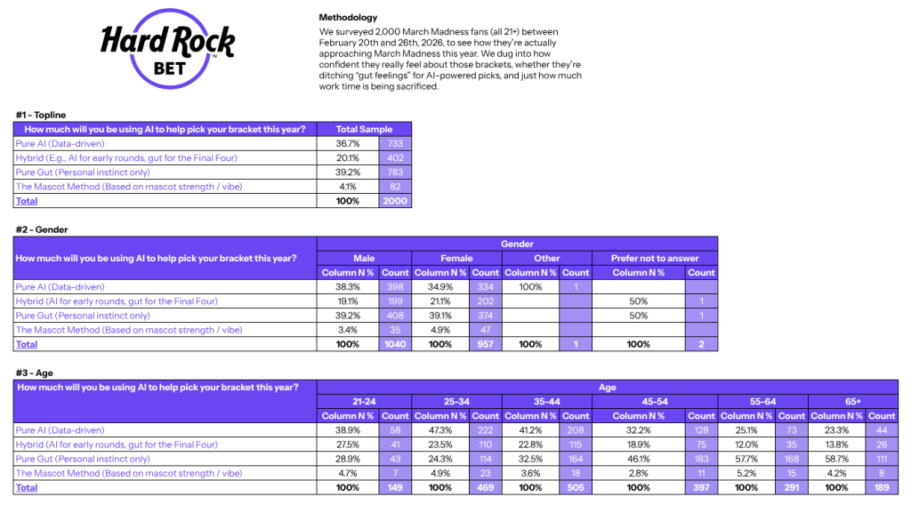 Hard Rock Bet even commissioned a study asking respondents how they would fill in their brackets this season: