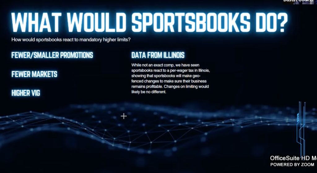 Gouker said that operators would likely offer fewer markets, worse odds, and less promotions in a market that doesn’t allow them to limit. He offered the response to Illinois’ per-wager tax as an example. In that state, some operators are passing the tax through to consumers via surcharges, while others set minimum bet standards.