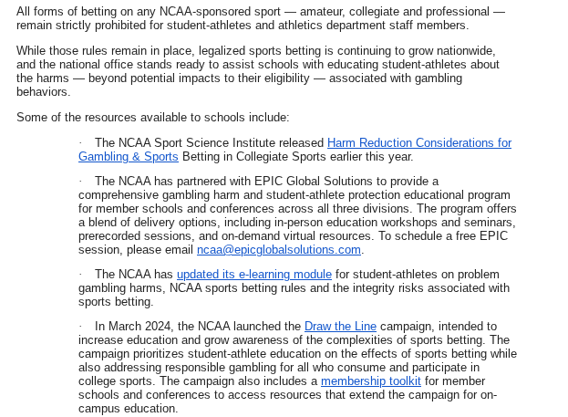 Student-athletes have been barred from any sports gambling since the NCAA codified a policy in 2023.