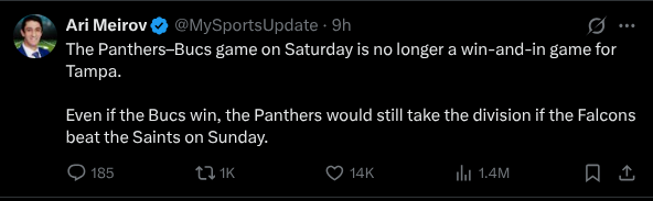 Of note, the Bucs opened the season as consensus +105 favorites to win the South, the Panthers +425.