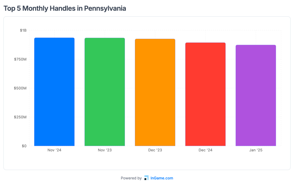 Handle peaked at $935.5 million last November, and Pennsylvania may get its chance at $1 billion this November, which has five Saturdays and Sundays.