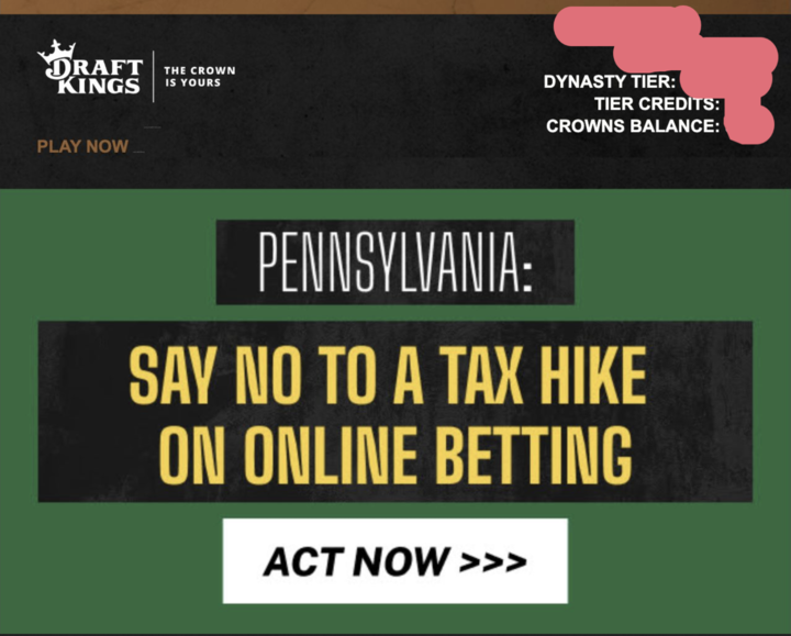 DraftKings last Friday sent Pennsylvania customers a call to action, suggesting they encourage state lawmakers to vote against an increase, and indicating that consumers will suffer should a tax hike get approved.