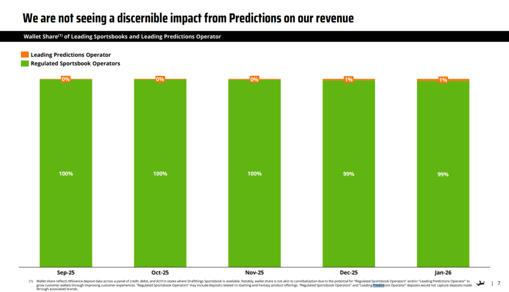 In his letter to shareholders accompanying DraftKings’ annual results Thursday, he noted that adoption was high in Missouri, which launched legal sports betting in December, despite the rise of prediction markets.