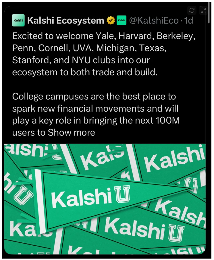 In September, Kalshi briefly heralded a campus recruitment drive for “ambassadors” to help it find its next 100 million users, but it removed the registration link without explanation. The concept of Kalshi U ran contrary to the spirit of laws in several states — such as Ohio — which strictly forbid gambling advertising near college campuses. Earlier sportsbook deals with university athletics departments — such as PointsBet with Colorado — generated such backlash they were rescinded, with some states eventually banning them.