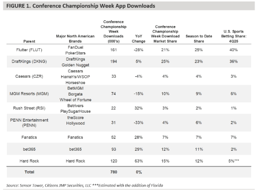 Citizens projects wagering on Super Bowl 60 to drop by 2% this year from last, for a handle of about $1.5 billion that if not validates, does mirror, the AGA figure.