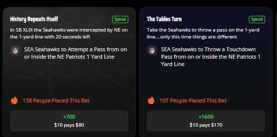 Those rascals at DraftKings, which just so happens to be based in Boston, which is in Massachusetts, just like Foxborough, where the Patriots play, concocted a knife-twister of a prop bet combo. The wagers reference Malcolm Butler’s game-sealing interception of Russell Wilson at the 1-yard line with 20 seconds left in an eventual 28-24 New England victory over the Seahawks in Super Bowl XLIX: